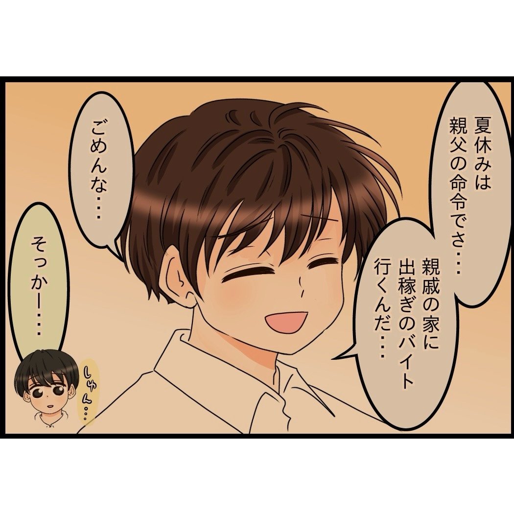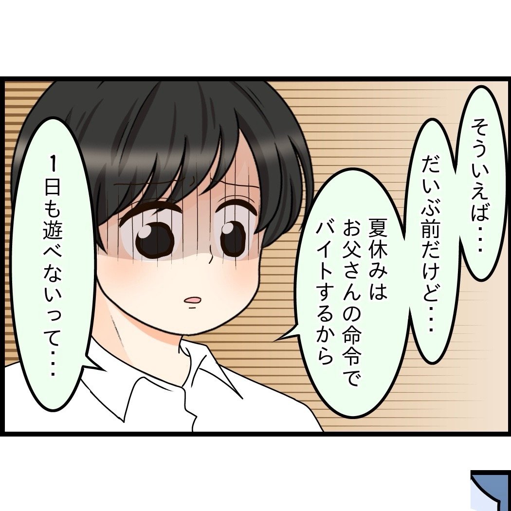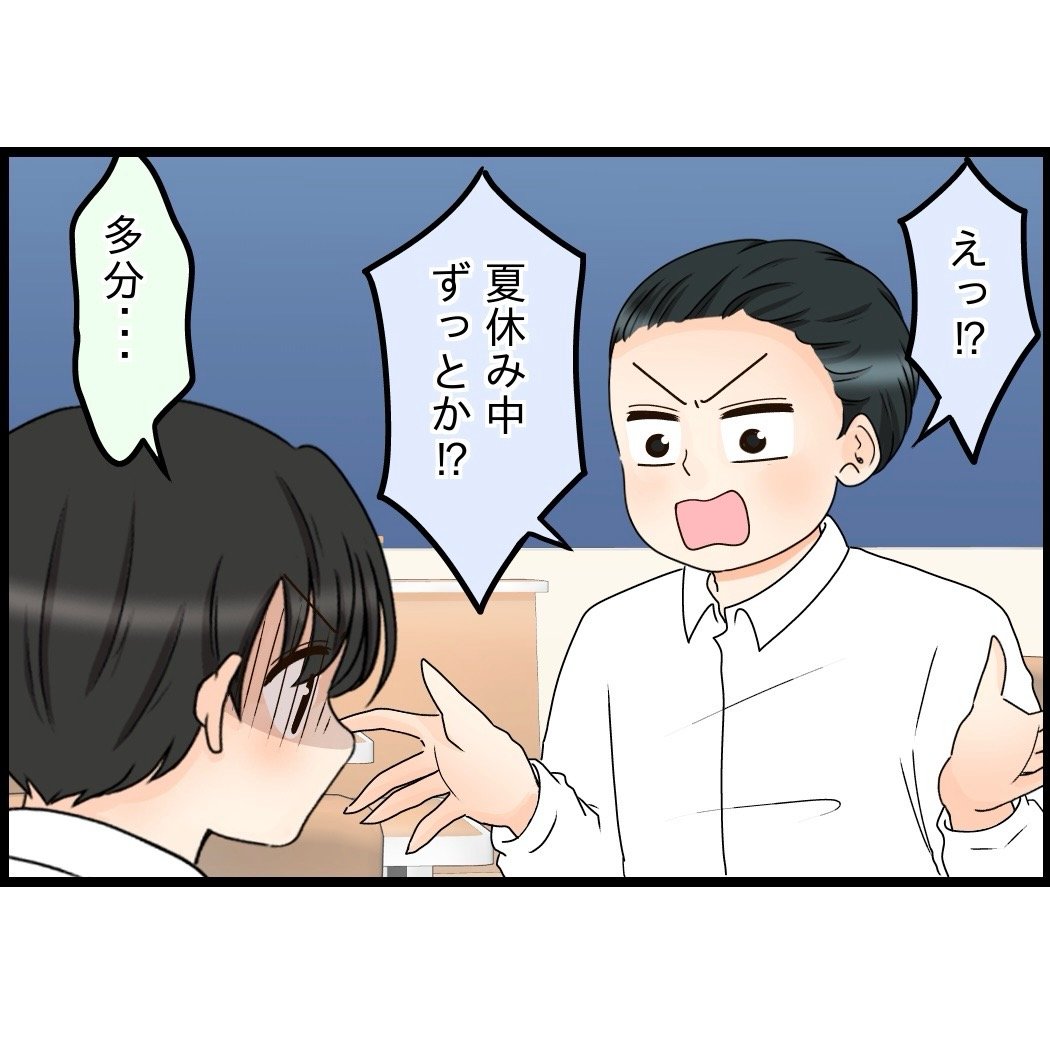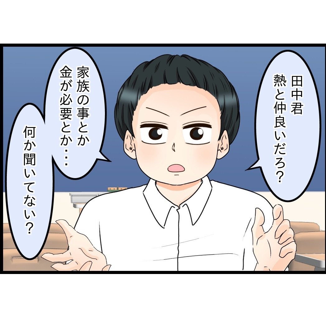 クラスメイトの問いかけで、熱君が夏休み中バイトをすると言っていたのを思い出した田中君。(3章)