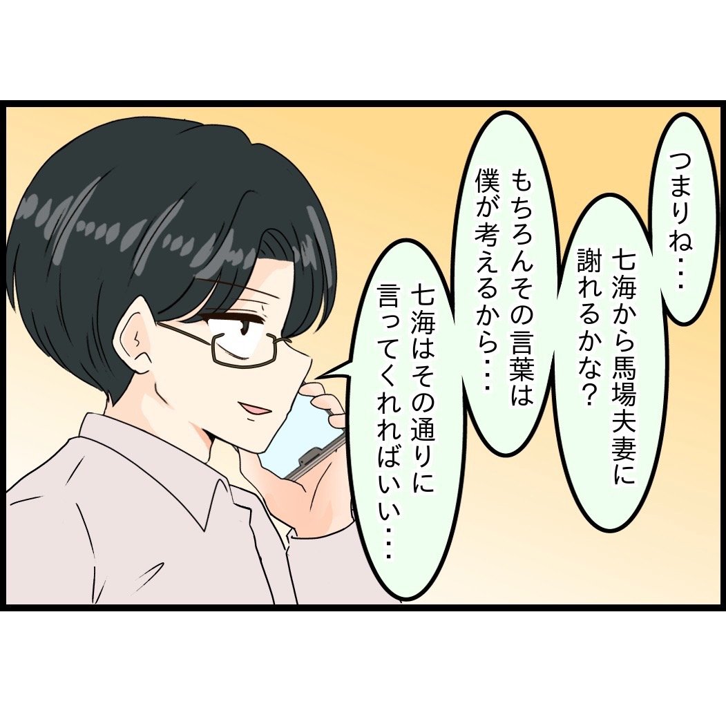 要約すると、夫婦間の問題を夫婦以外の人に話したり、録音したのは良くない、本来罰を受けなければいけないけど、罰の代わりに馬場夫妻にマコトが考える言葉で謝れと