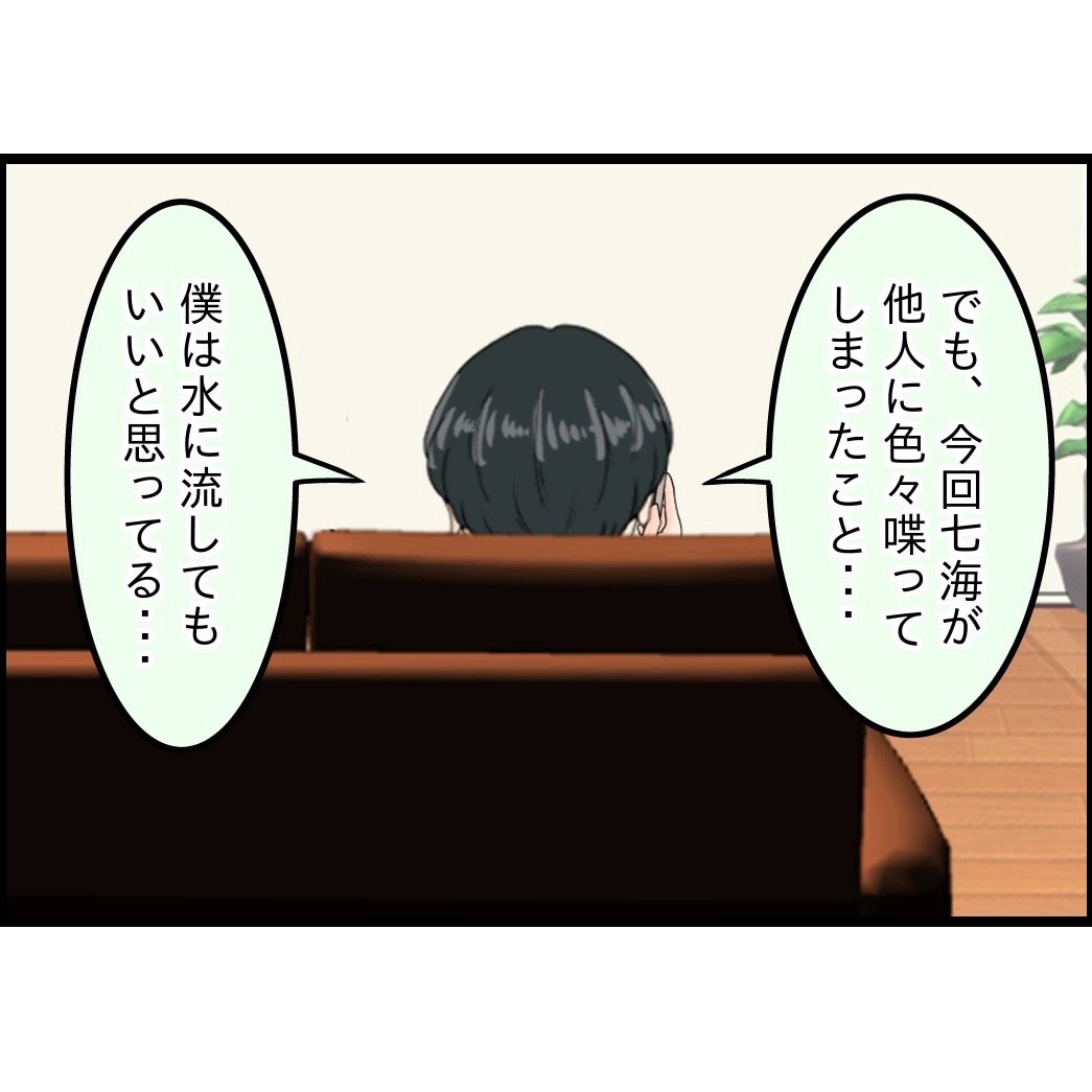 なぜ、ずーーーーーーーっと上から目線なんだろ?結婚して自分の思い通りになってたのに、妊娠してから七海が思い通りにならなくなって、暴言暴力を吐いてしまい、周りにも迷惑かけました…と言った方が潔いのになぁ。夫婦で解決できなくなったから親に相談したんだよ、七海さんは。と言っても親の縁の薄いマコトにはわからないだろうな。