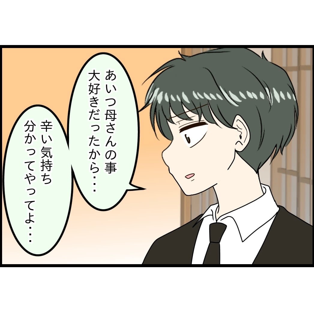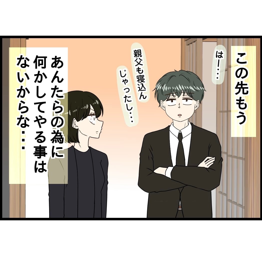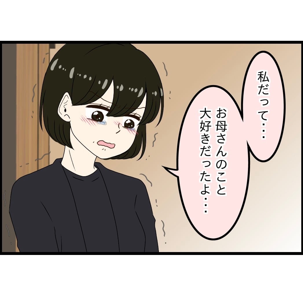 葬式が終わり、「今までお疲れ様。ありがとう。」の一言くらいあるかな、、、と思っていたのに、まさかのお母さんがこうなったのは自分のせいみたいな言い方をされ、夫もそれに同調するような態度を取られ、、、