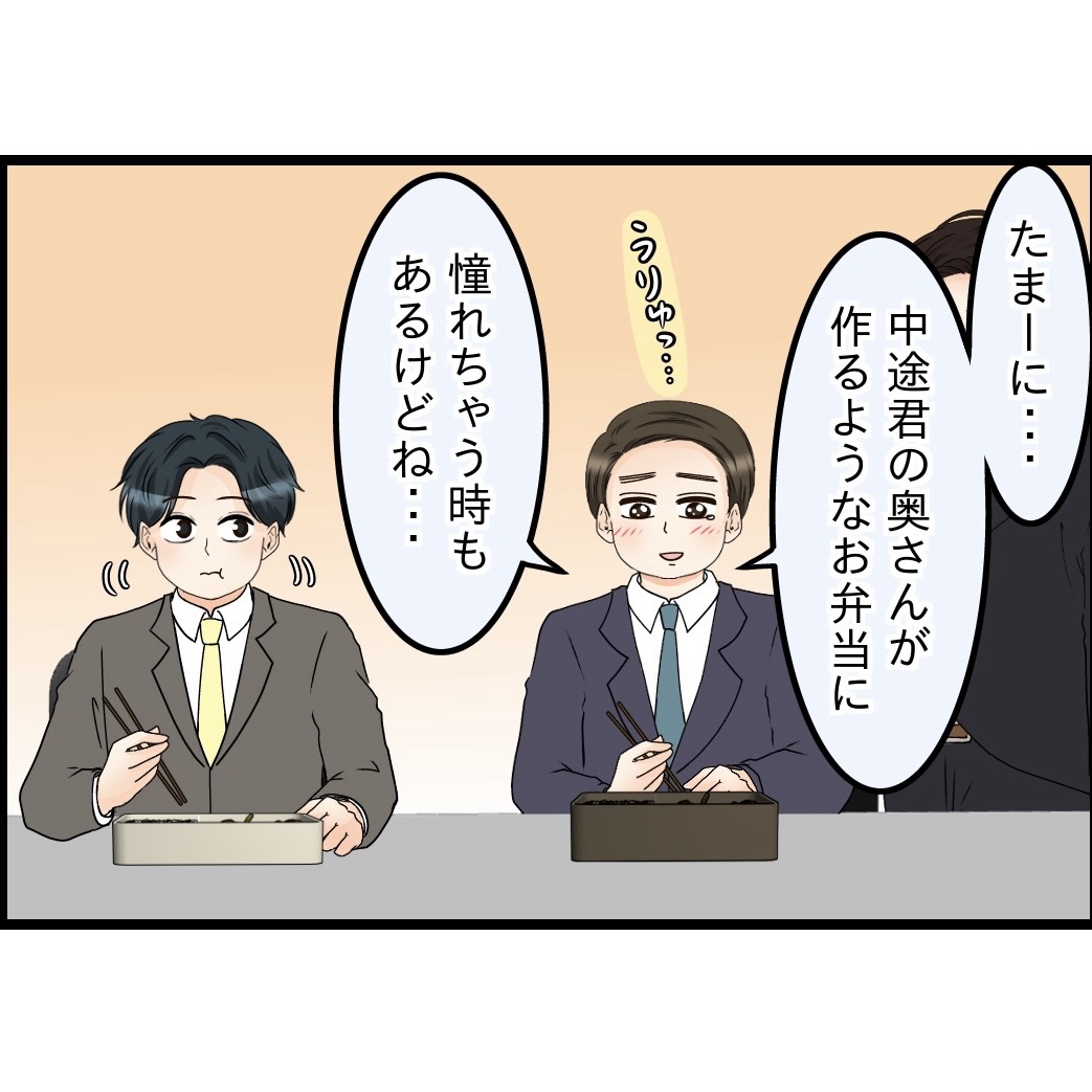 妻子が毎日幸せなら自分はそれでいいと言うが、でもやっぱり中途君みたいなお弁当は羨ましいと語るまさるさんに中途君は・・・