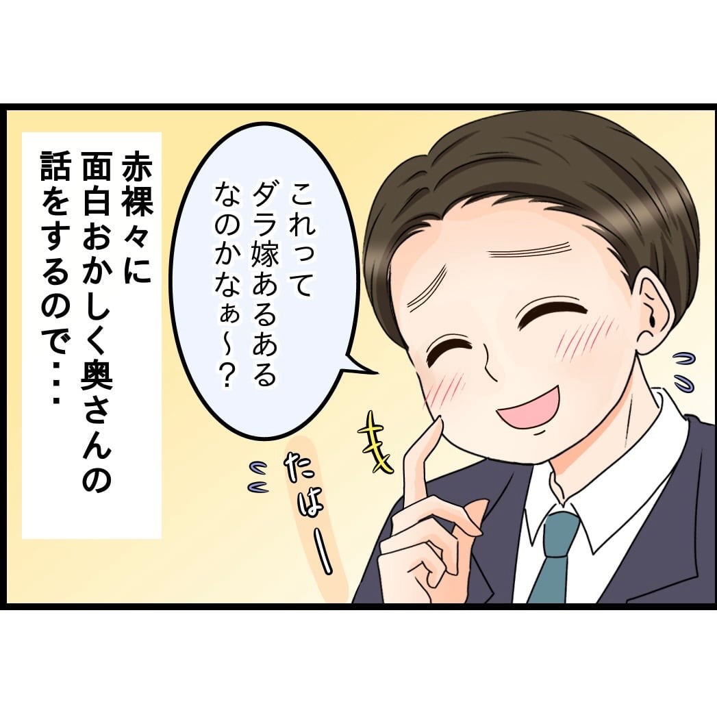 これが完全に創作の漫画だったら、自分好みの展開は、奥さんが本当にダラ嫁で、旦那は旦那で言いたいことがあったらちゃんと言えばいいのに適当にへらへらと婆をごまかすタイプで、どっちもどっち。やがてホラー展開に…なんですが