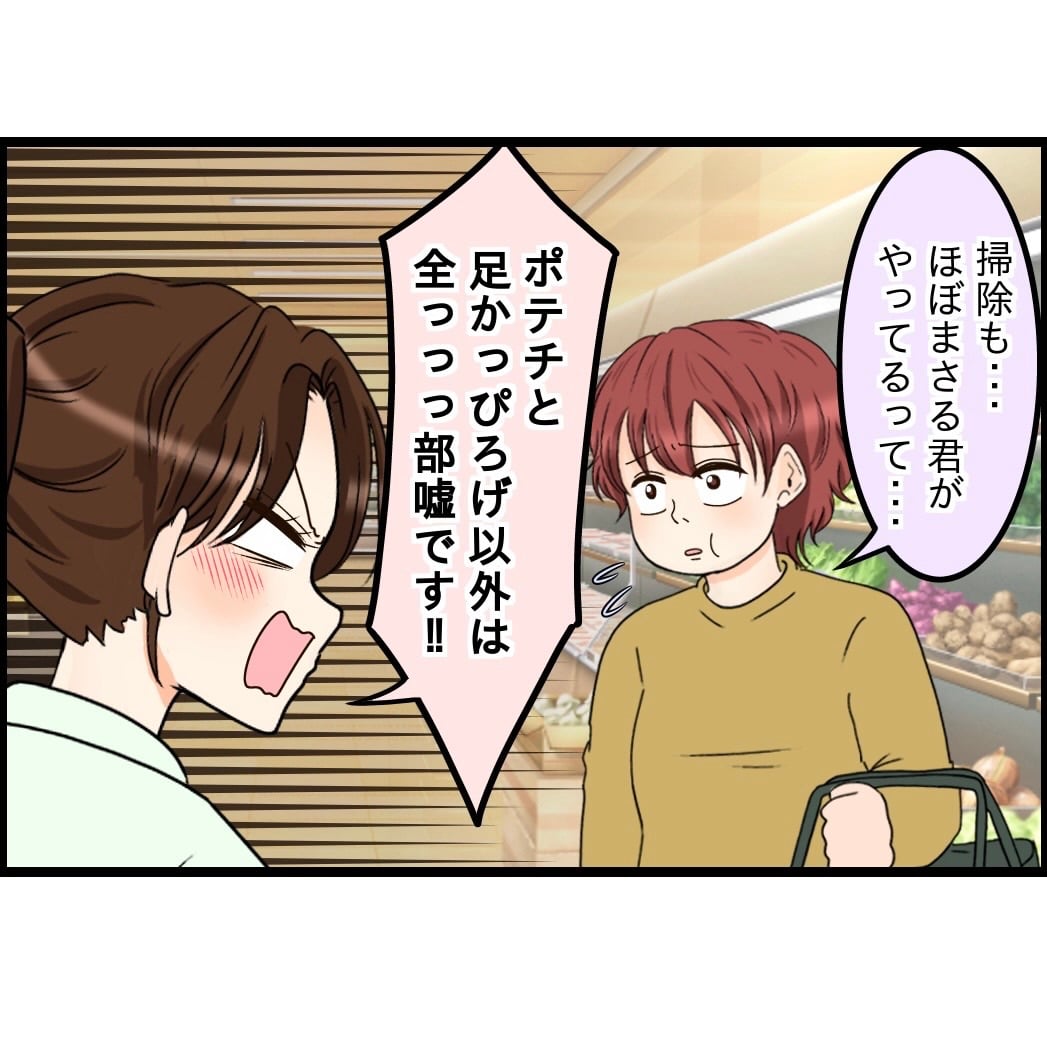 外でまさるさんが自分の事をダラ嫁だと吹聴していることを知ったみねこさん。