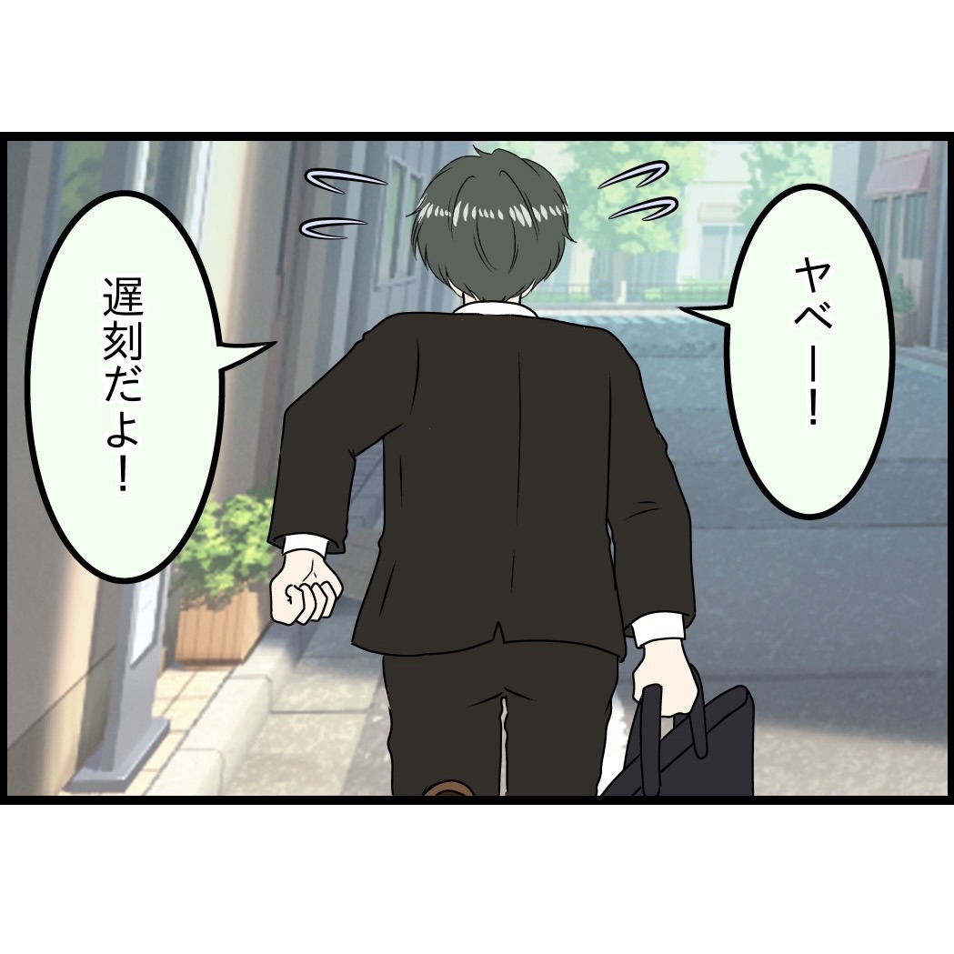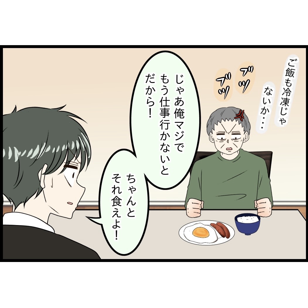 朝食に文句を言うお父さんを尻目にさっさと会社に行くひろきさん。