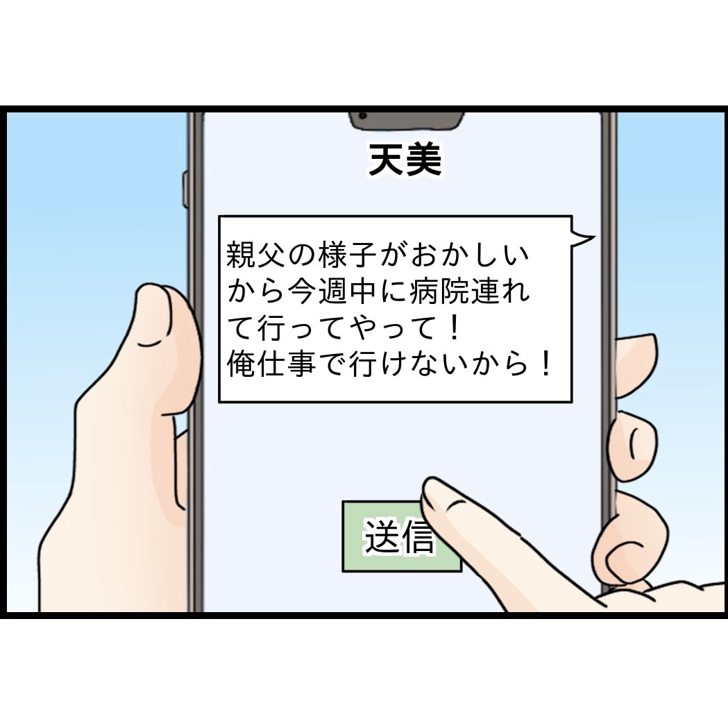 妹の天美に「親父の様子がおかしいから病院に連れてってやっ