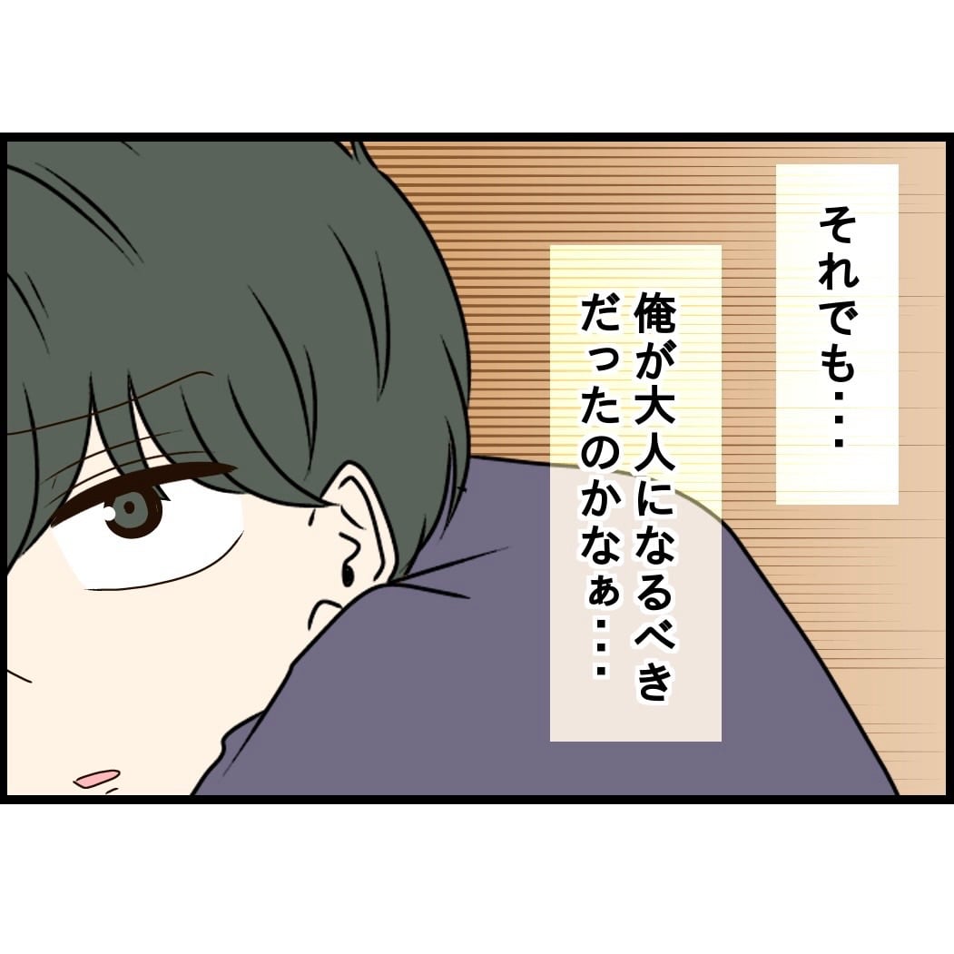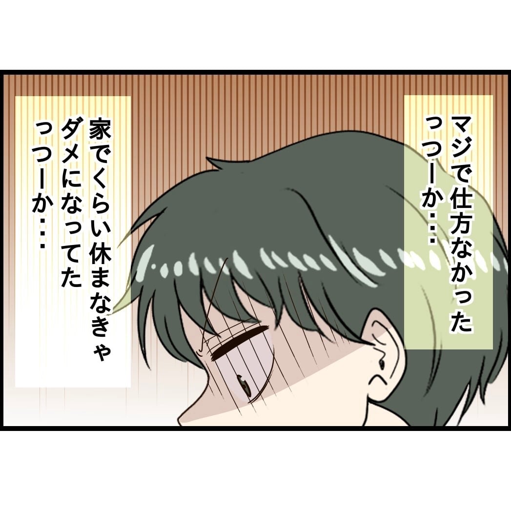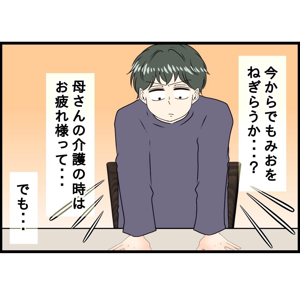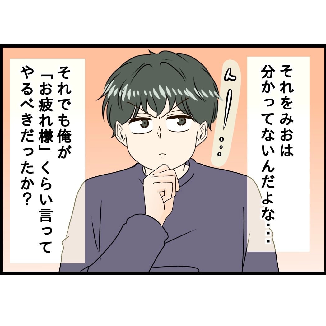 ちなみに「お疲れ様はお前が俺に言う言葉だろ!」と実際にひろきさんがみおさんに言ったのですが、描いてる当時は「お疲れ様は妻が夫に言う言葉だ」という意味で捉えて描いていたのですが、もしかしたら「今お父さんの面倒を見ている俺に対してみおが俺に言うべきだ」みたいな意味だったのかも、、、