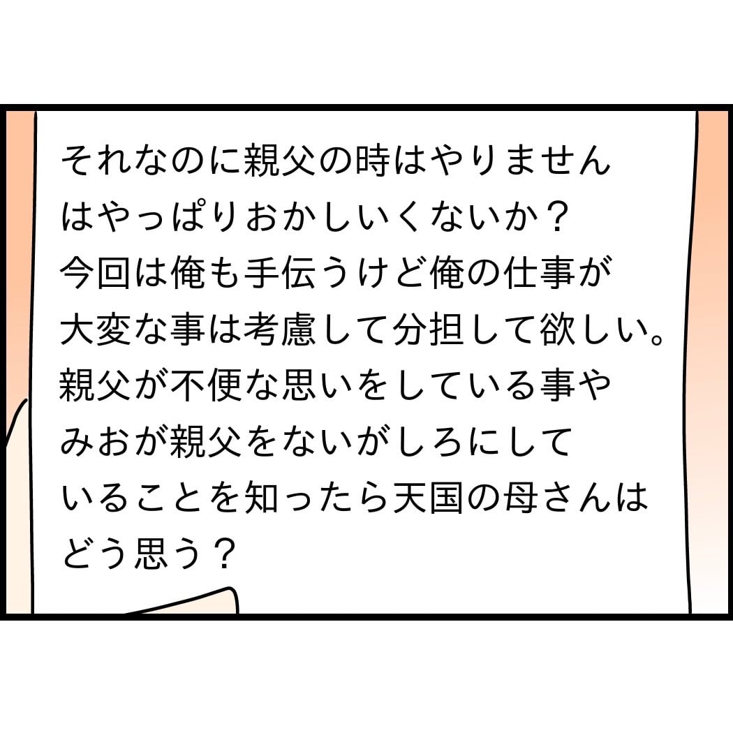 父親の介護をやらないのが、やりたくないからだって決めつけてる所も終わってるし、こんな家もう知ったことではないので、さっさと離婚して離れた方がいいのはずいぶん前からそう