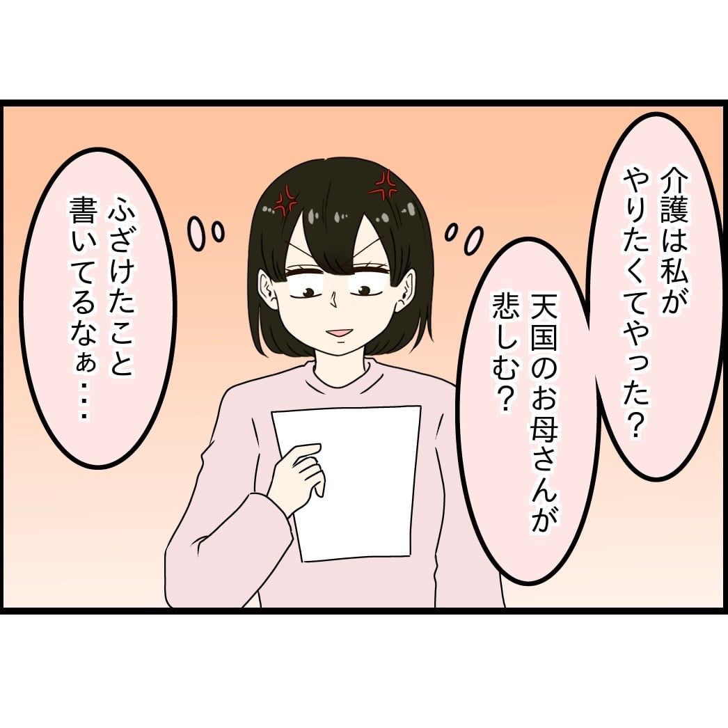 こんなアホみたいな手紙書く暇あるんやったら、実父の朝ごはんの用意くらいできるやろ。
