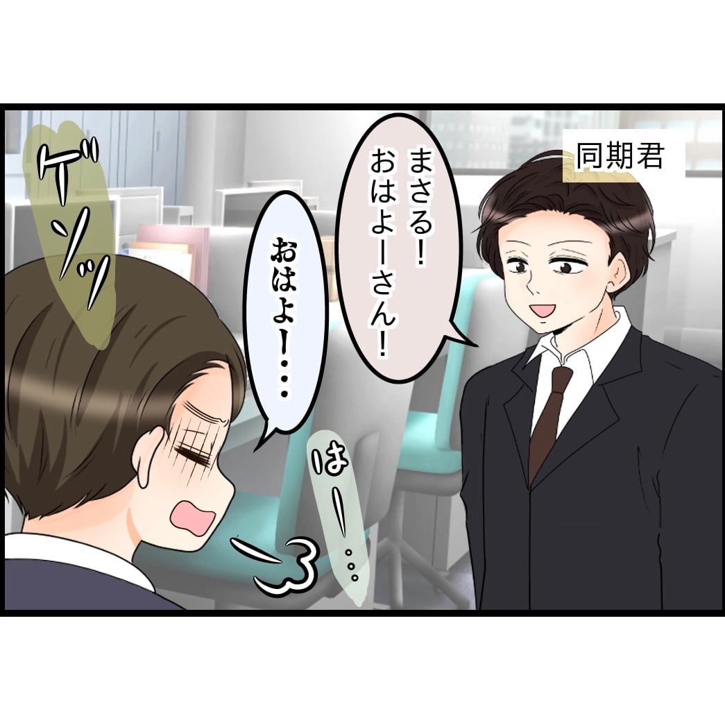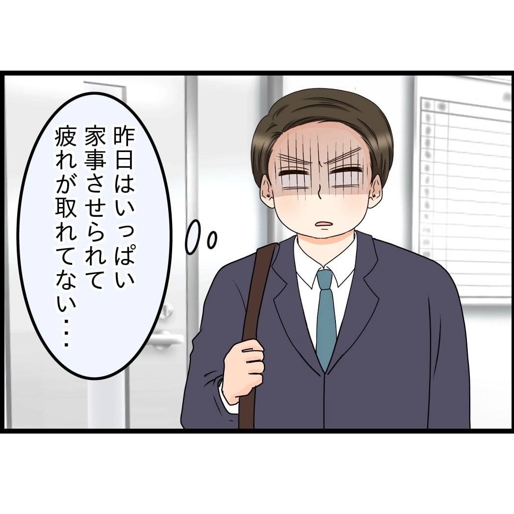 週末に一通りの家事をさせられて、翌週ぐったりしながら出社したまさるさん・・・